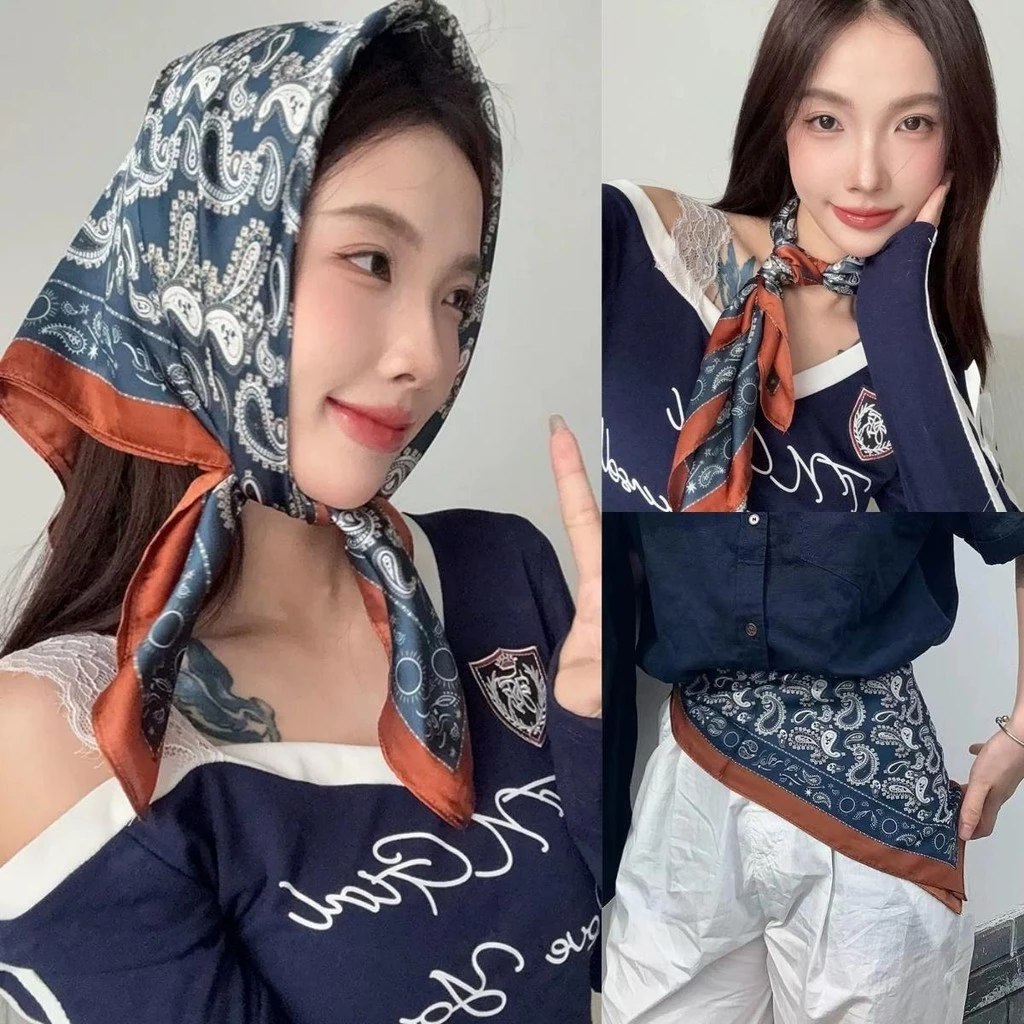ผ้าพันคอลายกราฟฟิก สวยหรู สีกรมท่า